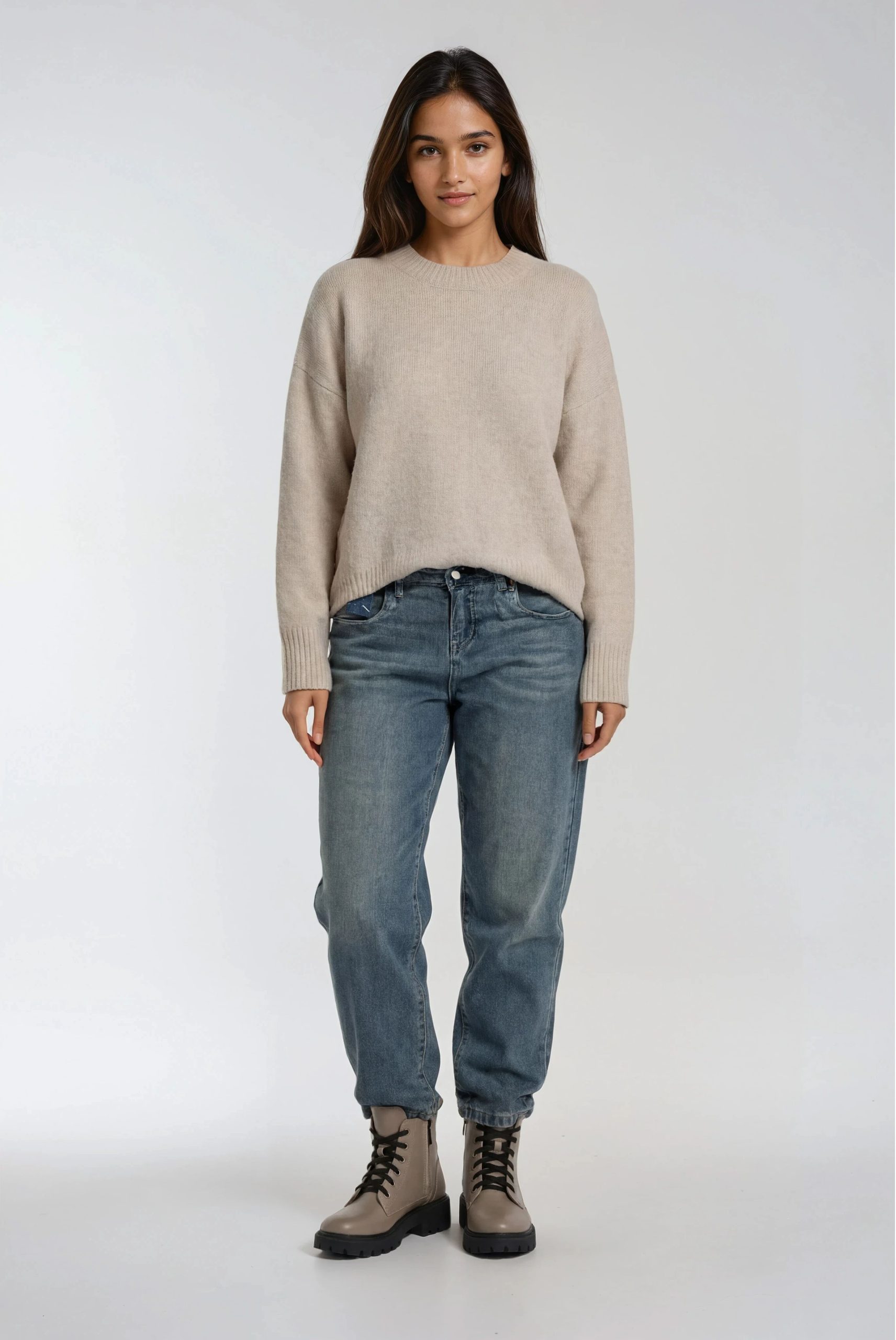 ג׳ינס נשים עם מותן גבוהה וגזרה ישרה.