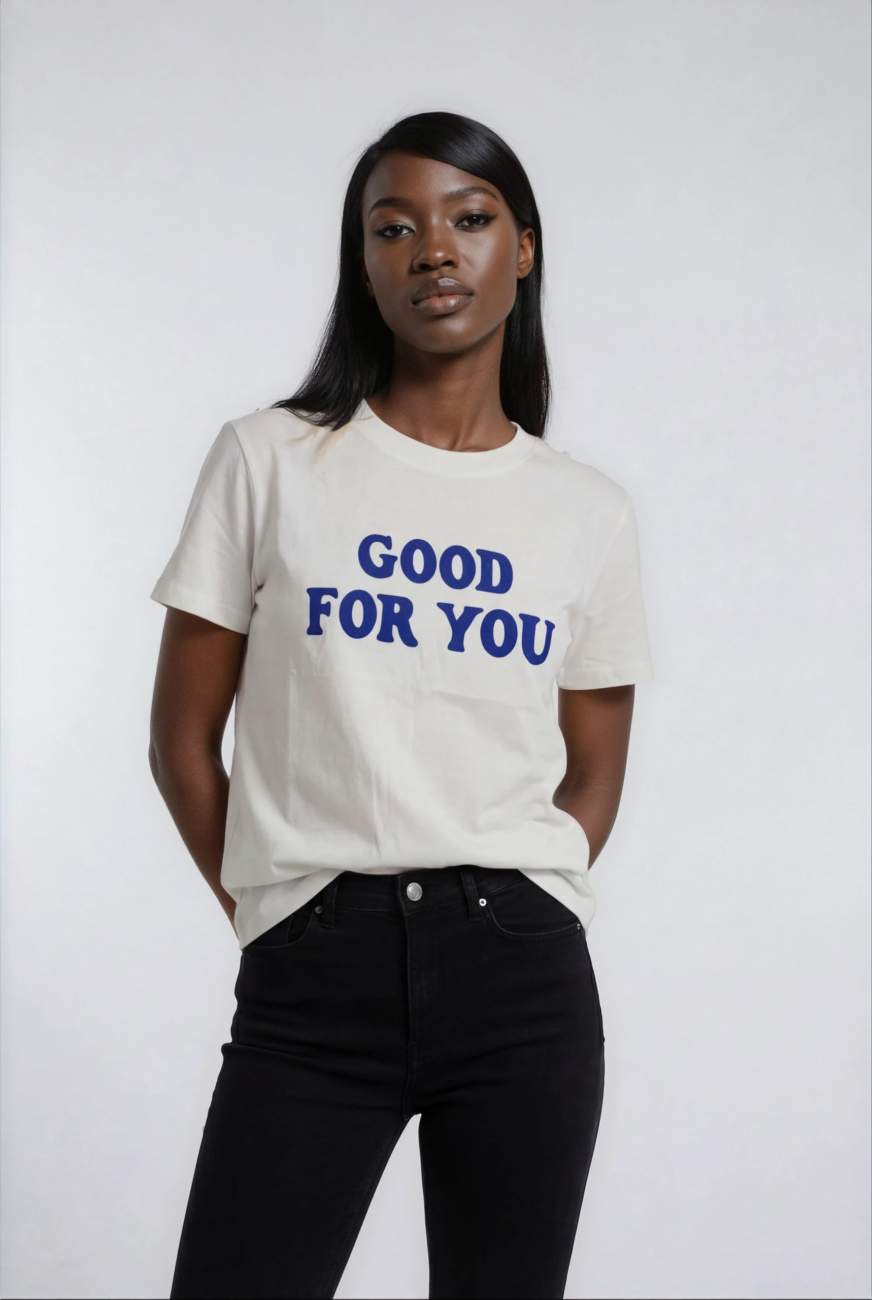 טי שירט מחויטת עם כיתוב בולט בחזית. גזרה מדויקת המדגישה את קווי הגוף ויוצרת סילואט נשי ומסודר. עיצוב מינימליסטי הופך את הדגם לאוניברסלי ומתאים ללבישה יומיומית, ומשתלב בקלות עם ג’ינס, חצאיות ומכנסיים.
