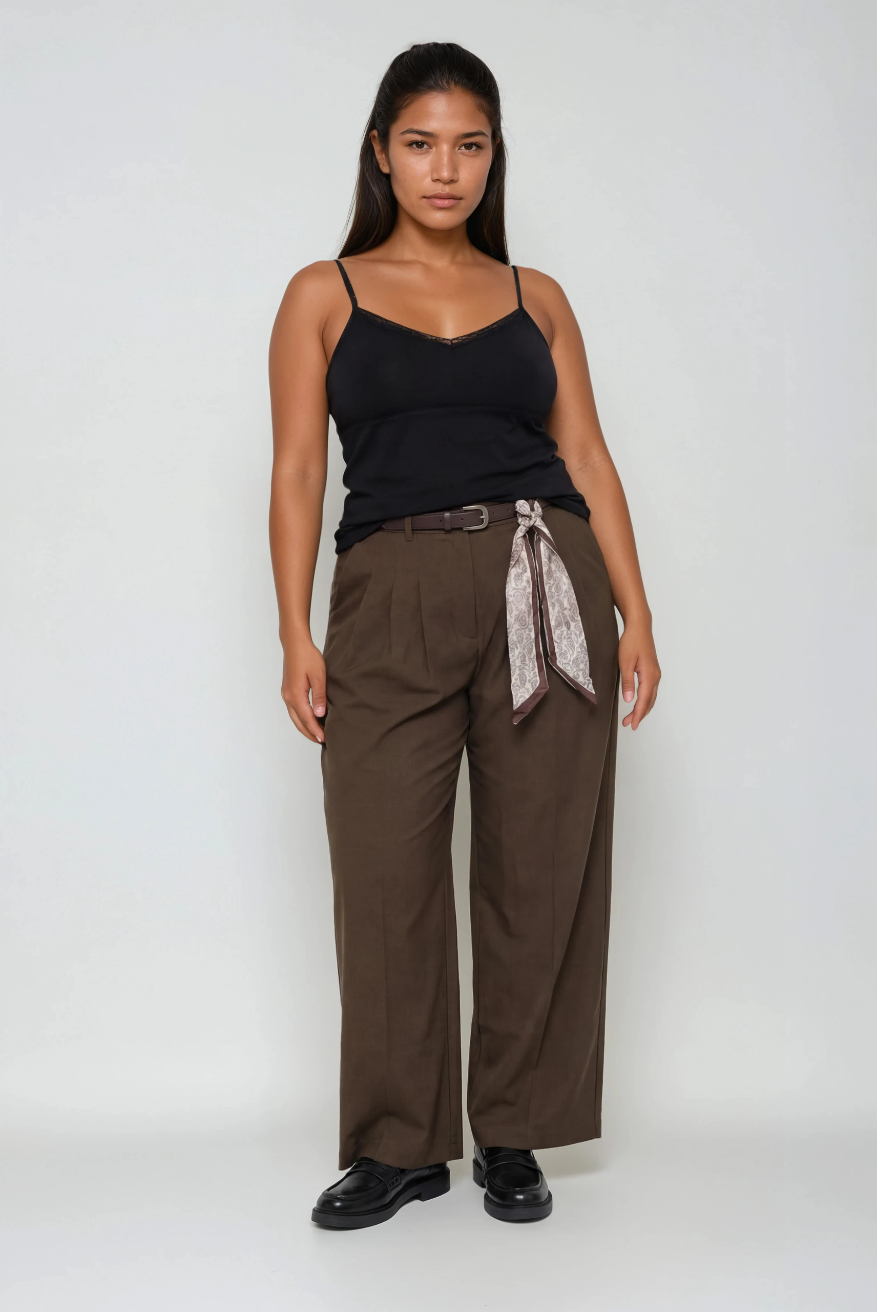 מכנסיים רחבים ומעוצבים בגוון זית אופנתי — פריט בסיסי אוניברסלי למראה יומיומי וגם למראה מוקפד יותר. הדגם בגזרה גבוהה מדגיש יפה את המותן, והגזרה החופשית מעניקה נוחות ומאריכה ויזואלית את הסילואט. החגורה משלימה את העיצוב וניתן לענוד אותה כאלמנט פונקציונלי או כאקסנט אופנתי. הבד רך ונעים למגע, שומר היטב על הצורה ובעל גמישות קלה, מה שהופך את המכנסיים לנוחים לאורך כל היום.