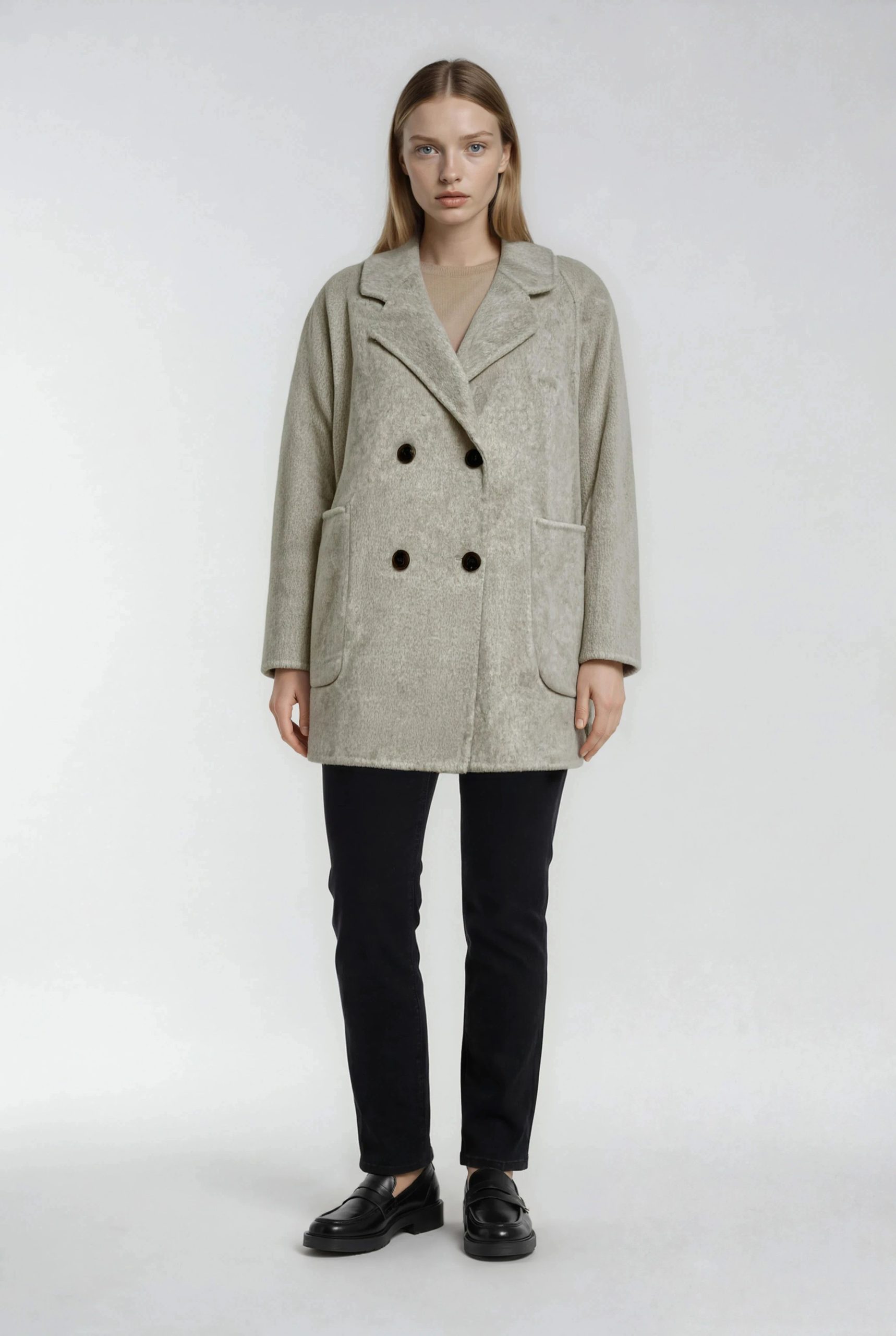 מעיל קצר קלאסי,מאפיין מרכזי — שורת כפתורים כפולה וסילואט relaxed מודרני.